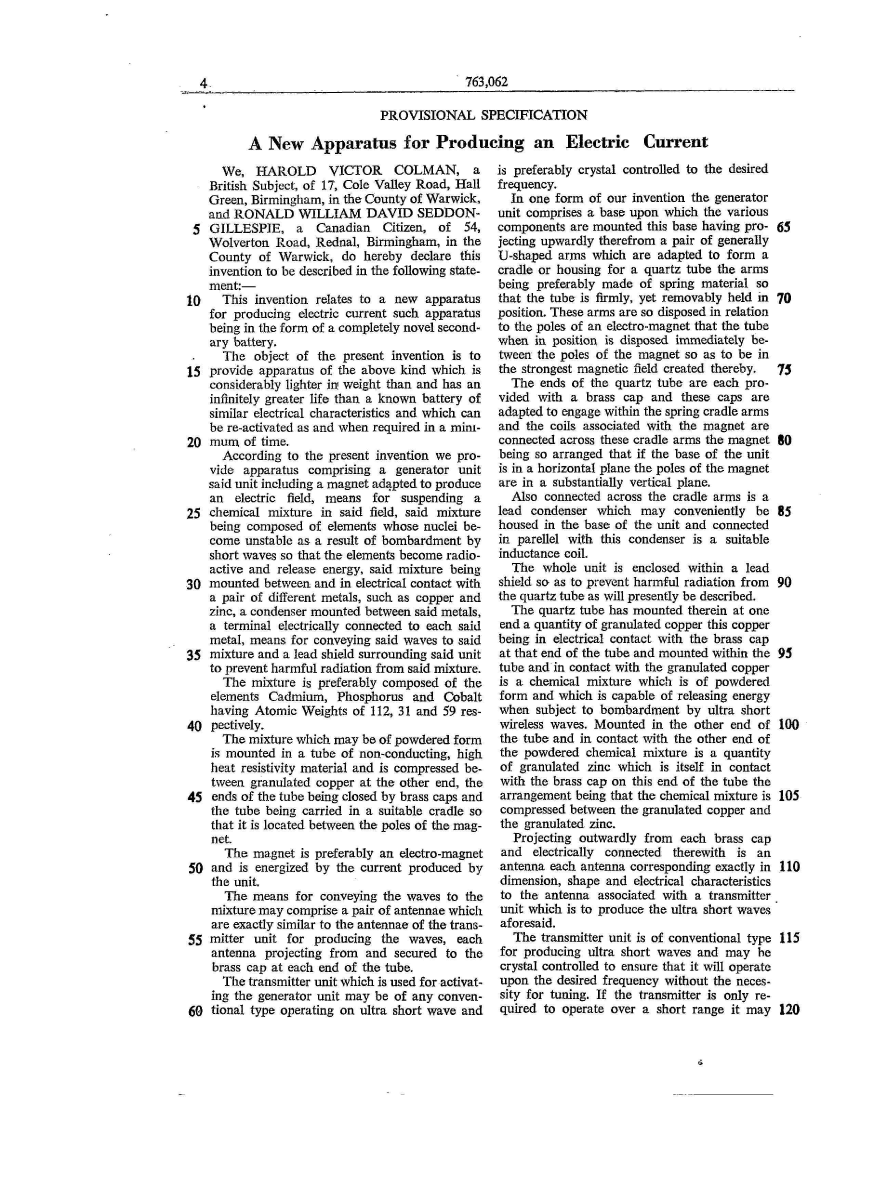 Assignee: Harold Victor Colman, Ronald William David Seddon Gi