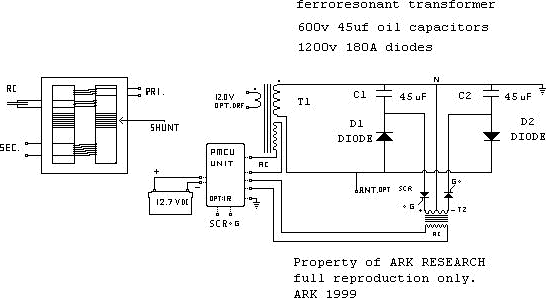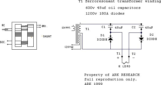 Today I took from storage a DEC 10 power supply ferroresonant transformer DEC 16-1491 rev D (part number ) used 1200v 22.5 uF capacitor in the resonant coil (ac primary input 117V 3.8A ) 444.6W 573V 5.5A 3151.5 W circulating power in resonant coil, if diode plug is used as in plan with X 2 capacity each capacitor will become a half resonant Tank circuit becoming in a sense a VECTOR accumulator one negative and one positive “half” in “resonant” mode, if discharged in sequential pulse mode the power is awesome compared to the input.