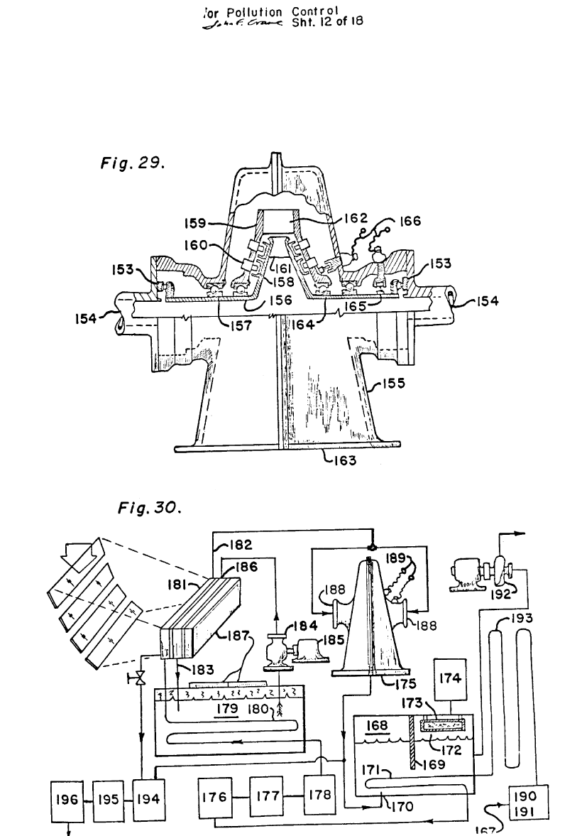 Pollution is controlled by means and process separation, transformation, deionizing and extraction of elements from liquids gases and solids. Pollution of air, water, and soil by sewage, refuse, and other contaminants is eliminated; elements are recovered as marketable items. The cause of disease is controlled by combinations of applied electromagnetic, cosmic, and magnetic energy that devital’izes viruses, bacteria, worms, fungi, and fcod poisoning in humans, animals, foods, liquids, gases, and other mediums. In addition to being indirectly controlled, air pollution is directly controlled by the production and use of heat from liquid hydrogen and solar energy heaters, which do not pollute.